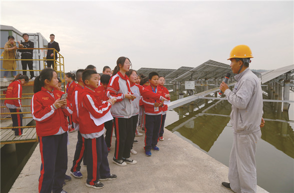 返程路上,我们走进灵台湖光伏发电站。电站技术人员介绍,这是一种将太阳光辐射能直接转换为电能的一种新型发电系统。