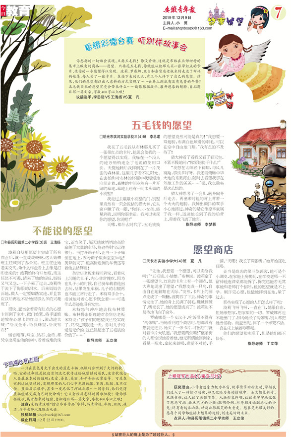 《安徽青年报·学生周刊》励志启智,开阔视野,净化心灵,陶冶情操,参与互动,集新闻性、知识性、趣味性、互动性为一体,是小学生成长的良师益友、参与互动的平台、沟通老师家长的纽带。