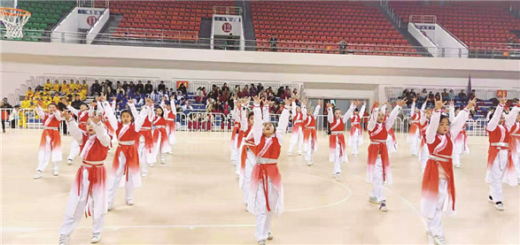 五禽戏社团成立于2017年10月,根据自愿报名的原则,进行选拔训练,现已经有成员62名。社团刚开始组建时,由于同学们大多是零基础,肢体协调性也不强,训练的难度比较大。在学校领导的高度重视下,多次选派体育教师参加市级、县级各类五禽戏培训,参加完培训的骨干教师回到学校后开展培训、推广普及工作,边学边教,同步推进。学校还将五禽戏纳入学校体育教学内容,结合“阳光体育锻炼1小时”活动,主要利用体育课时间教学,同时引导同学们利用课间操、课外活动时间开展五禽戏教学、展示。