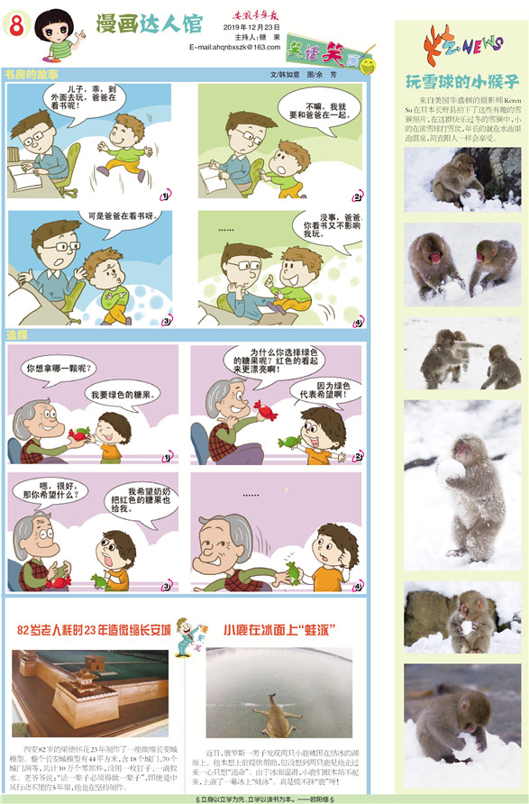 《安徽青年报·学生周刊》励志启智,开阔视野,净化心灵,陶冶情操,参与互动,集新闻性、知识性、趣味性、互动性为一体,是小学生成长的良师益友、参与互动的平台、沟通老师家长的纽带。