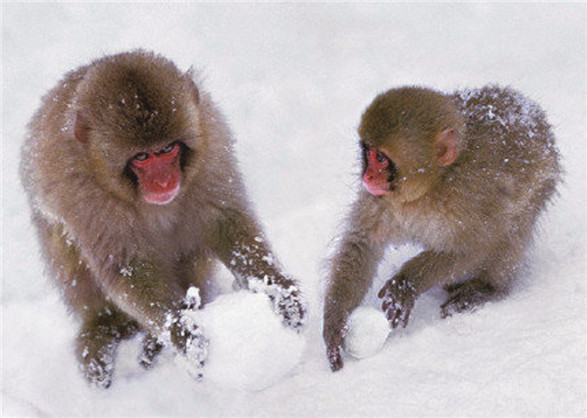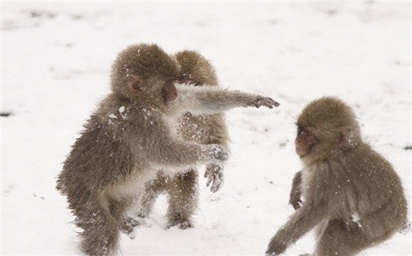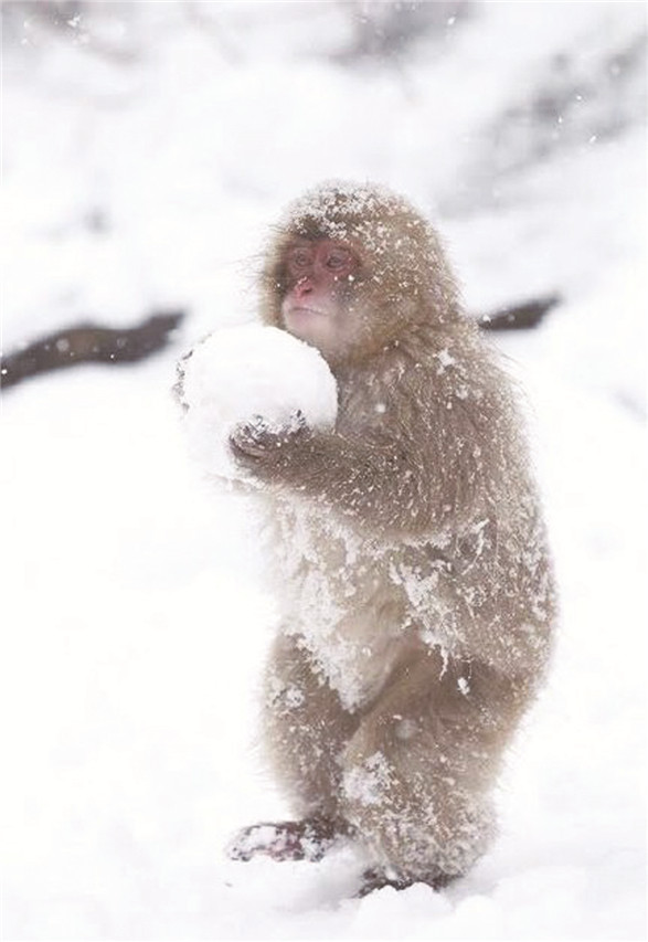 炫NEWS 玩雪球的小猴子 来自美国华盛顿的摄影师Keren Su在日本长野县拍下了这些有趣的雪猴照片,在这群快乐过冬的雪猴中,小的在滚雪球打雪仗,年长的就在水池里泡温泉,简直跟人一样会享受。
