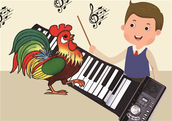 12月5日,贵州贵阳,教宠物行为心理的大学老师何世宇,正在教自己养的公鸡弹钢琴。何世宇表示,公鸡要比狗更容易训练,他已经教会自己的公鸡弹奏两首曲目:《童话》和《我和我的祖国》,目前正在学习《天空之城》。