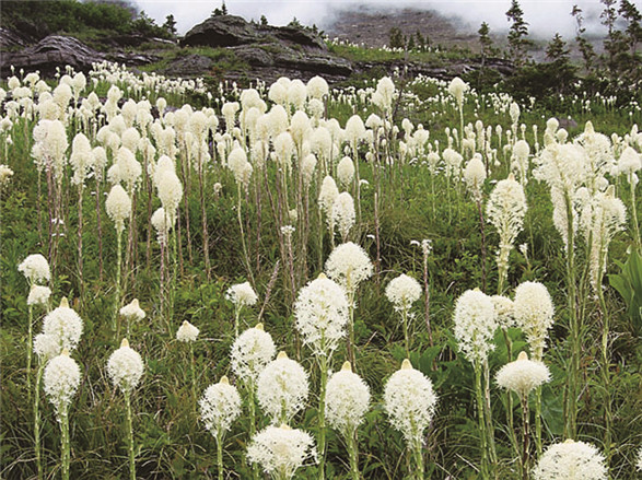 每隔大约五到七年,北美西部的熊草便会集体抽出长长的花序,绽放出无数朵簇拥在一起的白色小花。灰熊用熊草的细长草叶铺垫冬眠巢穴,这种美丽的百合科草本植物也因此得名。它们也被称作印第安篮草,因为印第安人常用熊草叶编织篮子。