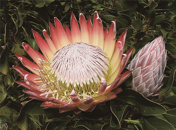 帝王花是深受南非人民喜爱的国花。然而,它们扎根的南非海角不仅干旱贫瘠,每隔十年二十年还会燃起狂暴的大火。千百年来的无数次灾难,迫使帝王花演化出了一整套火场生存策略。