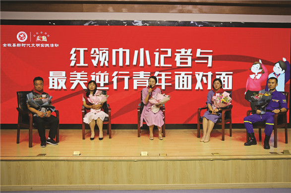 来自全椒县古城小学的12名学生记者代表参加了此次活动,分享会现场他们为奔赴抗疫前线的叔叔阿姨们送上鲜花、佩戴红领巾,表达少先队员们最崇高的敬意。