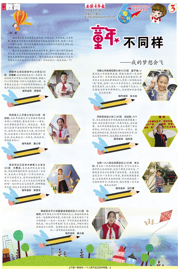《安徽青年报·学生周刊》励志启智,开阔视野,净化心灵,陶冶情操,参与互动,集新闻性、知识性、趣味性、互动性为一体,是小学生成长的良师益友、参与互动的平台、沟通老师家长的纽带。