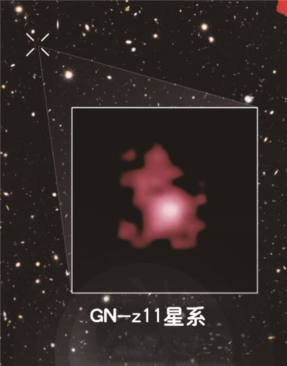 2016年,天文学家借助哈勃望远镜、斯皮策太空望远镜发现了一个星体,在照片上,它就像一粒灰尘,天文学家将其放大上万倍后才能勉强看出轮廓。这粒“灰尘”被命名为GN-z11。