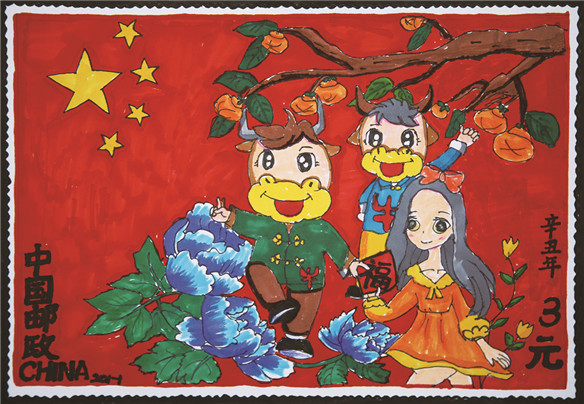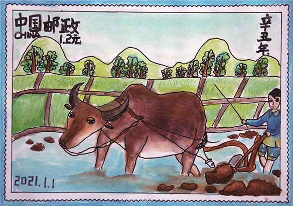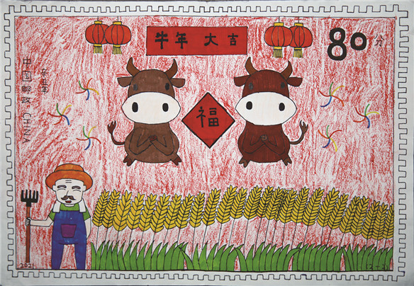 炫NEWS 金牛献瑞邮票设计 近日,铜陵市东方红小学积极组织学生参与2021年“铜陵市大中小学生‘金牛献瑞’生肖邮票设计大赛”。在各班老师的指导下,同学们四处收集材料,并且展开丰富的想象力,精心设计图案,认真绘制出一幅幅色彩亮丽、个性鲜明,富有童真童趣的邮票作品。