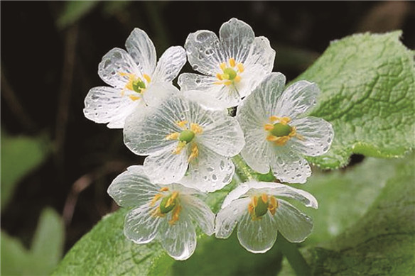 淡定,淡定!这位来自东北亚山林的小清新叫山荷叶,它们有着直径半米的大叶子和繁茂的白色花朵。如果被雨水浸湿,它们结构疏松的花瓣就会吸收水分变得透明,花瓣上只有少许脉络还能保持丝丝缕缕的白色。某位脑洞有点大的人士应该是联想到了X光片,于是便把如此浪漫的花朵称为了骷髅花。