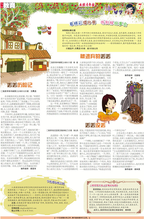 注意:来稿请注明“擂台参赛作品”字样,写清学校、年级、班级、姓名、指导老师以及联系电话。