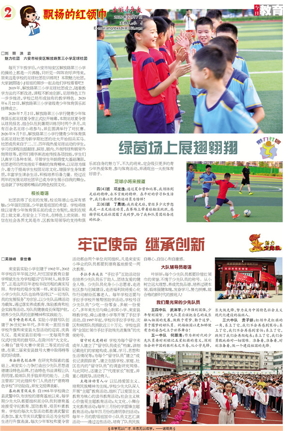 2019年,解放路第三小学足球社团成立,随着教学方法的不断改进,课程不断地创新,足球特色工作一步步推进,学校已经形成独有的教学特色。2020年6月22日,解放路第三小学省级青少年体育俱乐部挂牌成立。