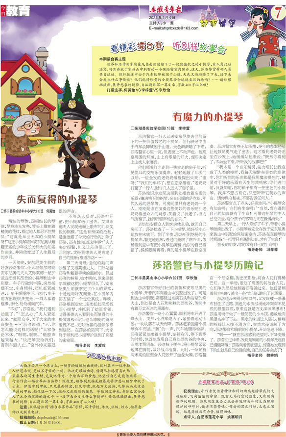 注意:来稿请注明“擂台参赛作品”字样,写清学校、年级、班级、姓名、指导老师以及联系电话。