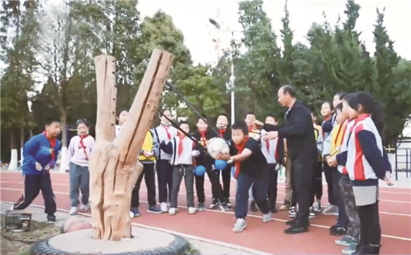 学校的树死了,就用它做成一人多高的“巨无霸”弹弓;16人款的板鞋是用旧课桌改成的,学生们玩得不亦乐乎……自1984年起,毕首金到云南省昆明市一所乡村小学执教,他就开始用废品改造体育用品,如今,已创新出了一百多种体育用具。他说:“学生找到爱了,就喜欢体育了。”