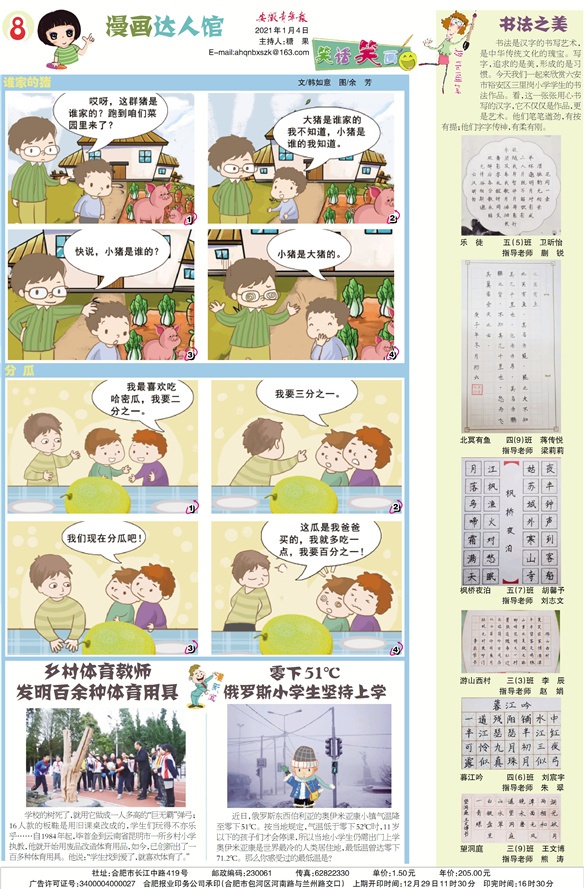《安徽青年报·学生周刊》励志启智,开阔视野,净化心灵,陶冶情操,参与互动,集新闻性、知识性、趣味性、互动性为一体,是小学生成长的良师益友、参与互动的平台、沟通老师家长的纽带。