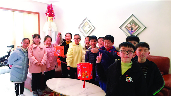 天长市第一小学永福路校区四(4)班的唐煜轩和周煜皓两位同学和班级的小伙伴们一起为元宵节制作花灯忙得热火朝天,“我们分工明确,有的在搭灯笼架,有的在灯笼上贴剪纸,还有的在帮忙传递工具,大家一起合作制作出的精美灯笼,一定要拍照留住这美好的瞬间。”唐煜轩说。“不仅如此,在琳琅满目的花灯下,还挂有色彩各异的字谜条,接着迎来最精彩的时刻——猜字谜游戏。”周煜皓补充道。