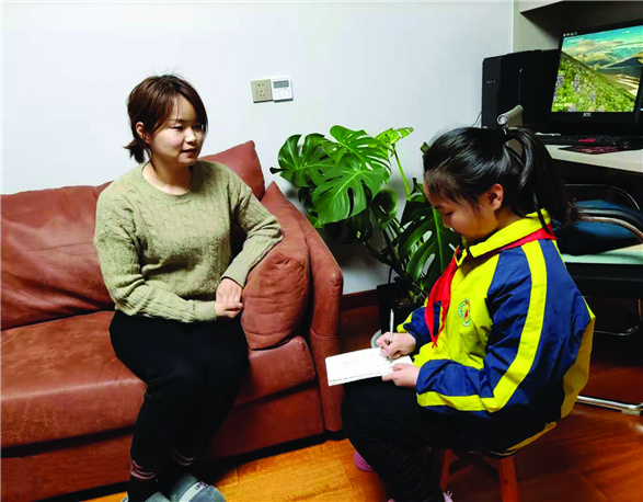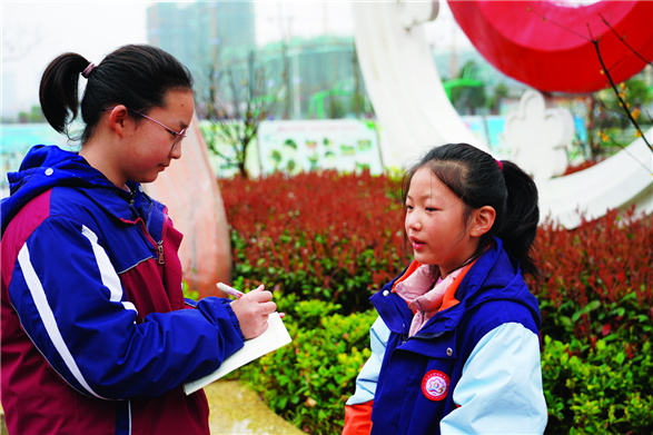 什么是奉献?何为新时代活雷锋?带着这两个问题,东至县至德小学三(4)班的欧阳嘉玘在小区里采访了大家公认的活雷锋——业主张磊,“保安爷爷说,他经常搀扶行动不便的人;邻居阿姨说,突然下雨时,楼顶的被子和衣服总会被他收到避雨处;楼下的小妹妹说,放学时爸妈不能准时接她,总是张磊叔叔送自己回家;物业叔叔说,小区的旧衣回收箱里总被他塞满了整齐干净的衣物。得知大家的评价时,张磊叔叔谦虚地说,“我只是做了一些力所能及的事情,生活在一个小区就是一家人,一家人就应该互相帮助!学习雷锋好榜样,帮助别人是很自然的事情。”