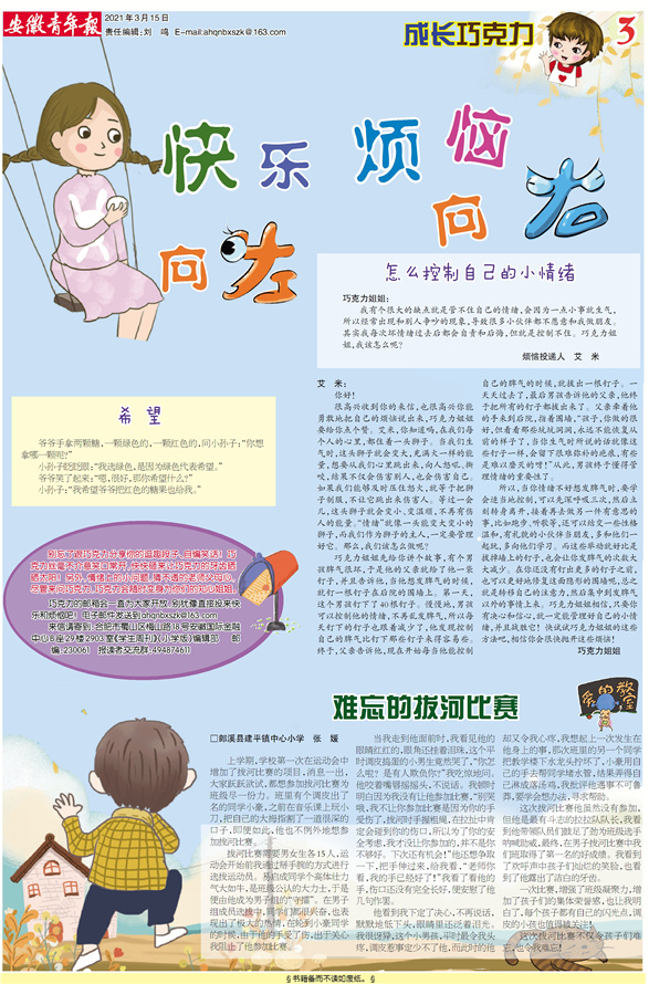 《安徽青年报·学生周刊》励志启智,开阔视野,净化心灵,陶冶情操,参与互动,集新闻性、知识性、趣味性、互动性为一体,是小学生成长的良师益友、参与互动的平台、沟通老师家长的纽带。