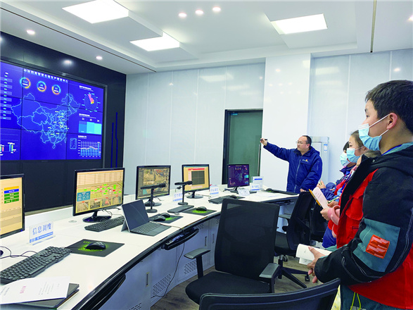 随后,中铁四局物资工贸合肥分公司仓库室副主任兼调度指挥中心负责人王高沙叔叔带学生记者们走进了“智慧仓库”的核心大脑——调度指挥中心,通过大屏幕可以看到车辆有序穿梭在仓储库区,各个库区装卸动态影像清晰投影在大屏上,仓储库区货位分析报表、货区吞吐量报表、各种物资分类年吞吐量报表一一呈现。