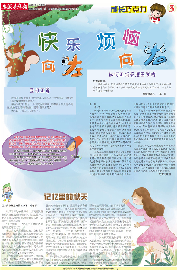 《安徽青年报·学生周刊》励志启智,开阔视野,净化心灵,陶冶情操,参与互动,集新闻性、知识性、趣味性、互动性为一体,是小学生成长的良师益友、参与互动的平台、沟通老师家长的纽带。