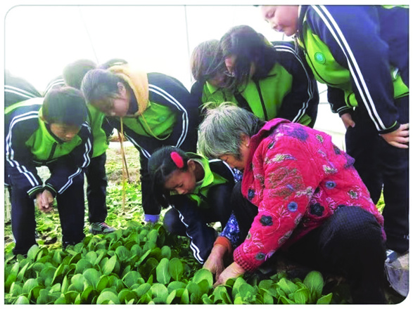 一周快报 阜阳市枣庄镇王庄学校 我知“盘中餐” □李海峰 近日,阜阳市枣庄镇王庄学校组织学生到附近蔬菜大棚参观,同学们仔细观察了各种蔬菜的生长情况,了解了蔬菜的生长过程及常见病虫害防治等知识。活动中,同学们通过用眼看一看、用鼻闻一闻、用手摸一摸等多种感观形式接触了蔬菜,不仅懂得了很多大棚蔬菜种植的基本知识,提高了自身的科学素养,丰富了课外生活,同时也体验到菜农劳动的艰辛,懂得了“谁知盘中餐,粒粒皆辛苦”的深刻含义。 和奶奶学收菜