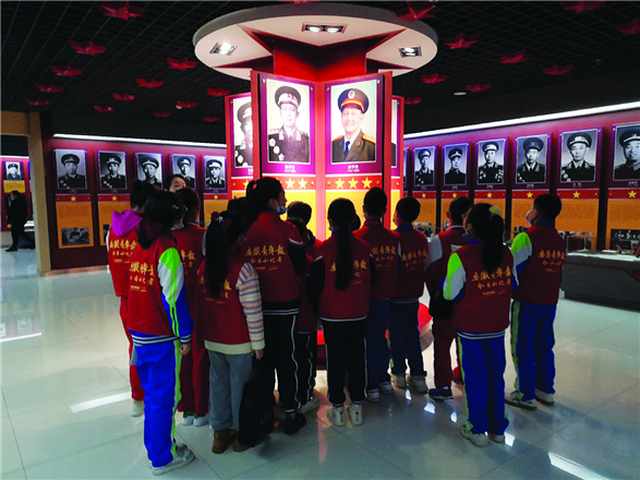 在将星璀璨纪念馆展厅,学生记者有幸瞻仰了金寨59位开国将军的风采。1955年至1965年,金寨县授衔的将军有59位,其中上将1位、中将8人、少将50人,在全国十大将军县中排名第二。杨阿姨重点介绍了第一位自降军衔的徐立清将军、唯一一位被毛主席特批“定均有功,由少晋中”的皮定均将军等多位开国将军的英勇事迹。听完后,学生记者纷纷表示,无论到什么时候,战功赫赫的将军们永远是夜空中最亮的星。