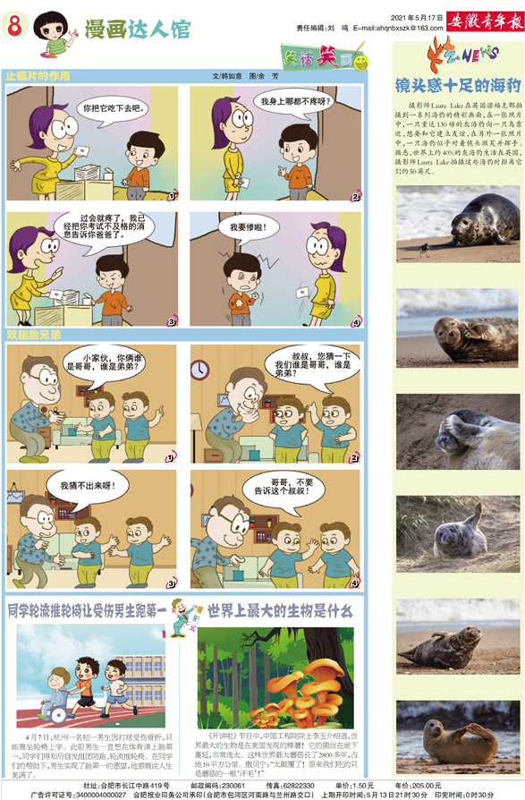《安徽青年报·学生周刊》励志启智,开阔视野,净化心灵,陶冶情操,参与互动,集新闻性、知识性、趣味性、互动性为一体,是小学生成长的良师益友、参与互动的平台、沟通老师家长的纽带。