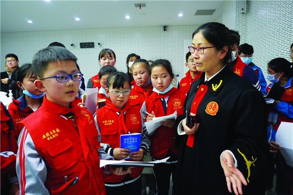 学生记者们走出烈士纪念馆,来到颍上县人民法院,先后参观了少年法庭、家事法庭党建活动中心、图书馆等场所,并采访了县法院机关党委专职副书记李文佳和县法院审判委员会委员、家事少年审判庭庭长韩振铖。