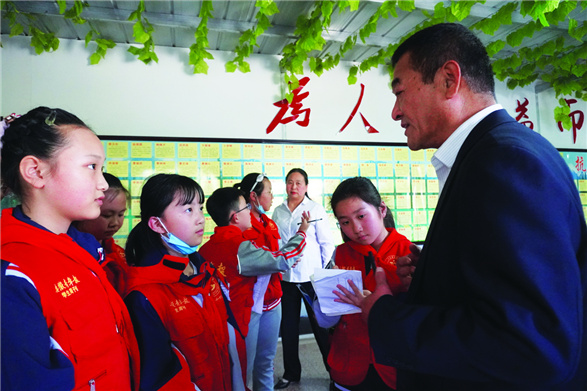 颍上县实验小学的朱熹诚一边好奇地打量公司随处可见的红色标语一边提出问题:“叔叔您好,作为颍上的大型综合性企业,你们是怎样带头开展党史学习教育的?” 韩永辉微笑着谈道:“当下,企业通过开展读红色书籍、观红色影片、瞻仰红色基地等活动,发扬革命传统,汲取奋进力量,切实增强了广大群众爱党爱国情怀。企业坚持一切为了人民,一切依靠人民,架起党群连心桥,找准共建合力点,跟多个养殖场合作,帮助贫困户脱贫,为疫情防护、抗洪抢险提供物资,做到发挥自身价值,为人民、为社会、为国家服务,让群众共享高质量发展成果,为迎接建党百年贡献力量,赢得了职工群众的普遍赞誉。”