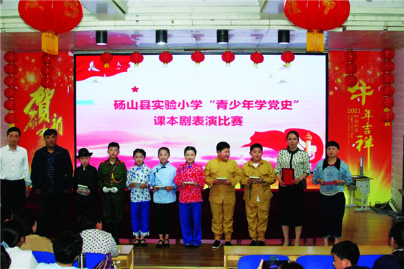 5月12日下午,砀山县实验小学举行了以“青少年学党史”为主题的红色经典课本剧大赛。小演员们怀着最炽热的爱国心,用最深沉的情感去演绎剧中角色,特别是扮演赵一曼的小演员贾壹壹在剧中的表演十分精彩,她在英勇就义前高呼:“打倒日本帝国主义!中国共产党万岁!”把会场气氛引到了高潮。本次红色经典课本剧比赛,不仅是一次青少年专题党史学习教育课,也是一次爱国主义教育实践课。砀山县实验小学将继续进行一系列“学百年党史 育时代新人”活动,献礼党的百年华诞。