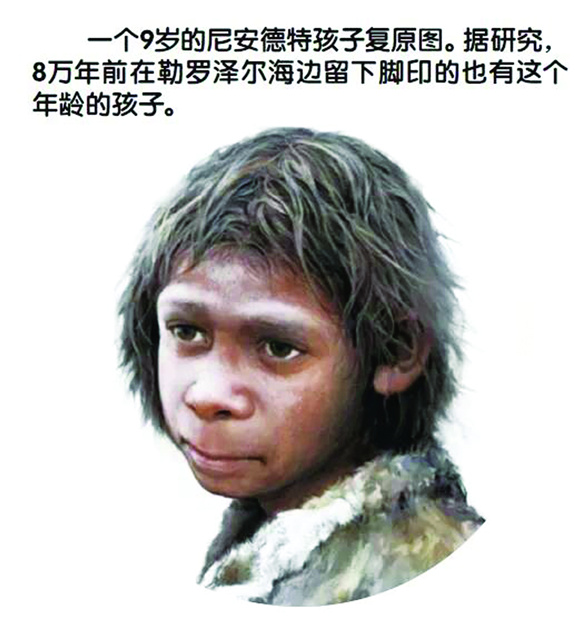 那么,当时在沙滩上漫步的是什么人呢?考古学家对脚印进行了研究,他们发现,留下这些脚印的人的脚底比我们的要平,这符合尼安德特人的脚型特点,因此认定这些脚印是尼安德特人留下的。而这些脚印中有88个是完整的,长度在11.4~28.7厘米之间,通过脚长,考古学家估算出这群人的身高在74厘米到185厘米之间。考古学家推测,这群人中有两三岁到十来岁的少年儿童,也有成年人,其中大部分是少年儿童,只有一两个成年人。