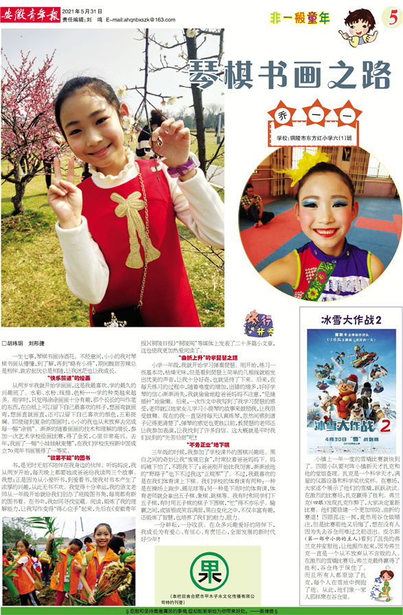 《安徽青年报·学生周刊》励志启智,开阔视野,净化心灵,陶冶情操,参与互动,集新闻性、知识性、趣味性、互动性为一体,是小学生成长的良师益友、参与互动的平台、沟通老师家长的纽带。