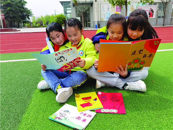小作者带着自己亲手制作的绘本走进教室,成为一名小小的党史宣讲员,带领同学们分享党史故事。同时这些精美的党史绘本还在学校图书室进行展览,大家争相传阅,爱不释手,增加了他们对党史的了解。