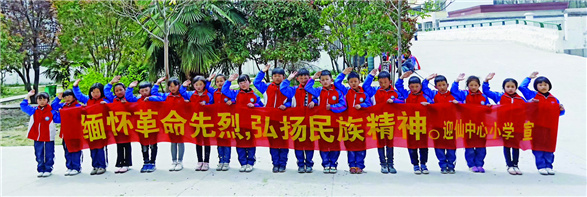 迎仙镇中心小学春苗少先中队队员向烈士敬队礼