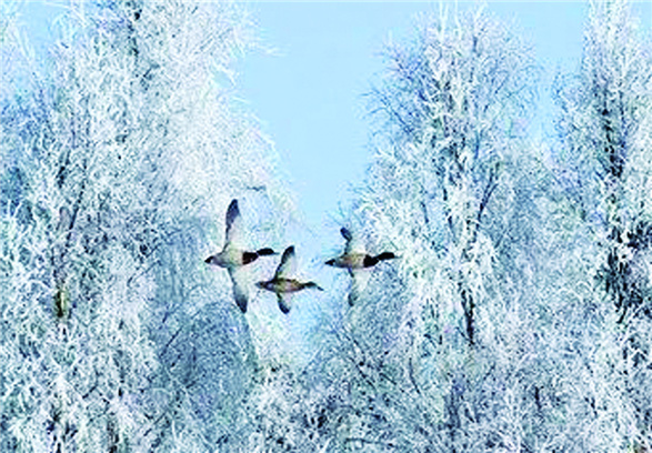 很多鸟类在四季轮回时,都有长途迁徙的习性,动辄上千里地“航行”,靠的是不断拍打翅膀,若没有保存体力的绝招,很快就会因疲累而掉队。所以很多候鸟在长距离结伴飞行时,常常排成“V”字队形,这样一来,位于“V”尖的领头鸟只需拍打几下翅膀,就会在身后产生上升气流,后面的鸟儿就可以借这股气流滑翔,大大节省体力。