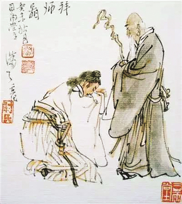 入学堂之后,便是拜师礼。学生先要叩拜孔子像,双膝跪地,九叩首;然后再拜先生,三叩首,并向先生赠送早早准备好的拜师礼包。