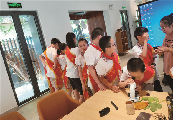 活动当天,首先有专业老师对队员们讲解了微观世界的概念。从植物细胞和动物细胞的区别来讲解细胞的结构,生动又有趣,引发了队员们的好奇心。接着让每个队员都在显微镜下观看细胞结构,让队员们有个直观印象。然后对队员们带来的物体,手把手教他们制作显微镜下观看的标本,有从南淝河取的水、西红柿、土豆、树叶等等。还有队员现场拔下头发,也要在显微镜下观察,大家都觉得很奇妙。原来显微镜下的世界,也是如此五彩缤纷。还有看起来清澈的河水,原来里面也有很多蠕动小虫,从而引发要保护环境的深入思考。最后,老师还进行了有奖竞答环节,把今天的知识加以巩固,也提高了队员们的兴趣,直至活动结束,队员们还沉浸其中。