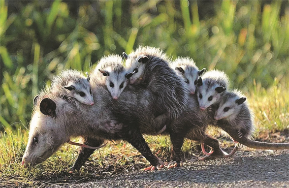 负鼠虽然长得与犰狳截然不同,但习性非常相似,也是一种昼伏夜出的动物,住在自己挖掘的地洞里,用大部分时间睡觉,只用很短的时间寻找食物。