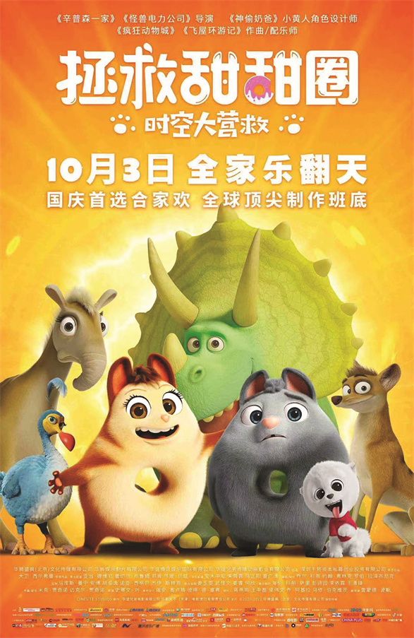 拯救甜甜圈时空大营救 在19世纪的一座小岛上,生活着一群叫菲拉萌的甜甜圈形的小动物。其中有两只菲拉萌意外地闯入时光穿梭的入口,来到现代的中国上海,在那里,他们发现菲拉萌已经灭绝!为了挽救种族灭绝的命运,他们必须借助一只可爱狗狗的帮助,回到过去,拯救他们的种族……从车水马龙的现代化大都市,到冰天雪地的南极,再到一片蔚蓝的大海。两只幸运的菲拉萌,开始了漫长而又有趣的旅途。10月3日,我们电影院不见不散!