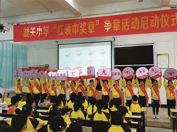枞阳县城关小学少先队 飞扬的红领巾 □杜 娟 黄世凤 少先队是少年儿童的组织,这个组织对少儿成长时期的个性发展是非常重要的。枞阳县城关小学坐落于美丽的莲花湖畔,有着悠久的历史,这里的少先队同样也如校园内的优美风景一般,四季常青,犹如一颗灿烂的明珠。 温馨的队室 每一个少先大队都有一间队室,它不仅是辅导员和少先队干部学习和讨论工作的场所,同时也是向少先队员进行教育的“有形”阵地。队室的前方学校布置了队徽、呼号、队歌、誓词等标志标识,队室的后方插着鲜艳的队旗,周围布满了鼓架和图书架,队室的中间一张彩色的桌子上记录了辅导员和队干们每一次的温馨会话,开学初的第一次会议、第一次竞选都是队员们成长的足迹。 亲密无间的小队干们 学校少先大队实行分级管理、层层负责制度。如大队长下设有两个副大队长,广播站站长。经过辅导员层层把关、筛选,还选出宣传委员、学习委员、劳动委员、体育委员、组织委员,从而再有小队干和广播员们。大队部每周召开会议,对小队干们反馈的问题进行集中商讨,每一学年度少先队大队部也会对表现优异的队干们进行表彰,调动了少先队队干们的积极性。 少先队的特色队 城关小学鼓号队是一支强劲的队伍,从选拔、训练,到走队形每一次都由老师们严格把关、步步紧跟,从最初的40人如今已发展为近70人。每一次学校的“六一”入队和大型活动,鼓号队总是学校的大功臣。尤其在鼓号队比赛中,队员们立下汗马功劳,在2018年举行的“铜陵市鼓号队比赛”中,一举拿下市一等奖的好成绩! 说到腰鼓队,城关小学的腰鼓队是枞阳县学校中的一道亮丽的风景线,更是少先队活动中的一大特色。腰鼓队成立迄今已有十多年,队伍换了一届又一届,但不变的是队员们满腔的热情与希望。 红领巾广播站 “当灿烂的阳光温暖整个校园,胸前的红领巾正迎风飘扬,让我为你采撷一缕阳光,留住一丝清风,让金色和红色印染辉煌,在这收获的季节红领巾广播站又和大家见面啦……”每当悦耳动听的声音从广播室传出来,这就是学校的红领巾广播站开播了,它是少先队大队部主办的一个宣传阵地,为发挥红领巾广播站的宣传作用,让全校学生感受到校园的蓬勃生机,广播站特开设了“新闻大视角”“知识百宝箱”“欢乐跳跳豆”“校园七彩树”“哆来咪点歌台”等栏目,受到了广大老师和学生们的一致好评。 来到城关小学,教学楼上“诚实、守信、勤奋、自强”的字样映入眼帘,这是城小的校训,也是学校少先队队员鞭策自己的人生信条。学校的张校长曾经对小队干们说过:“少年强则国强,只有少年不断进取,不断奋进,才有学校祖国美好的明天。”德育汪校长和辅导员杜老师也常常对学校小队干们谆谆教导,鼓励队干们多提问,多创新,多努力。只有学校少先队大队部完善规范,才能带动各班级制度更加规范。对此学校六年级(4)班大队长殷梓涵也表态:“我将认真努力工作,带领少先队大队部的小队干们勤恳、奋进,努力做好辅导员老师的小助手。” 学校少年儿童的成长需要鼓励,少先队的发展也离不开引导与激励。只有不断的创新,不断地开拓,学校的大队部、鼓号队、腰鼓队、红领巾广播站才能不断发展,争上新台阶。少先队这些独特的宣传将会成为少年儿童成长的方向标,更是凝聚他们奋发向上的无限动力。正是这些主力军,让学校城关小学的少先队永远魅力前行。