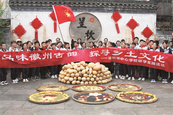 一周快报 黄山市徽州区呈坎镇中心学校 走向生活大课堂 □姜晓晖 10月12日,徽州区呈坎镇中心学校组织六、七年级学生到国家级研学基地徽州呈坎八卦村开展研学活动。学校积极引领学生由校园走向生活大课堂,走向自然,了解社会。在创意晒秋体验活动中,进一步了解家乡的乡土文化,在活动中感恩丰收,收获成长。
