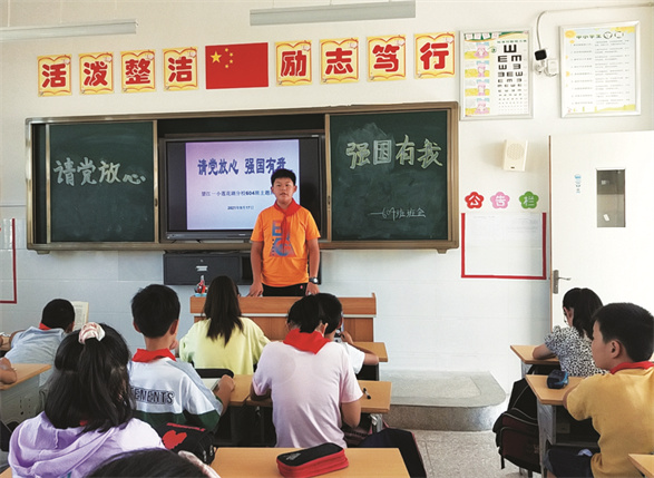 一周快报 望江县第一小学 红领巾心向党 献礼建党百年 □黄瀛霞 在中国共产党成立100周年之际, 近日,望江县第一小学进行了少代会换届选举,开展了主题班队会课等“红领巾心向党”系列活动。学校全面贯彻习近平总书记关于少年儿童和少先队工作的重要指示,牢记初心使命,传承红色基因,培育时代新人,团结带领广大少先队员听党话、跟党走,为实现中华民族伟大复兴的中国梦做好全面准备。
