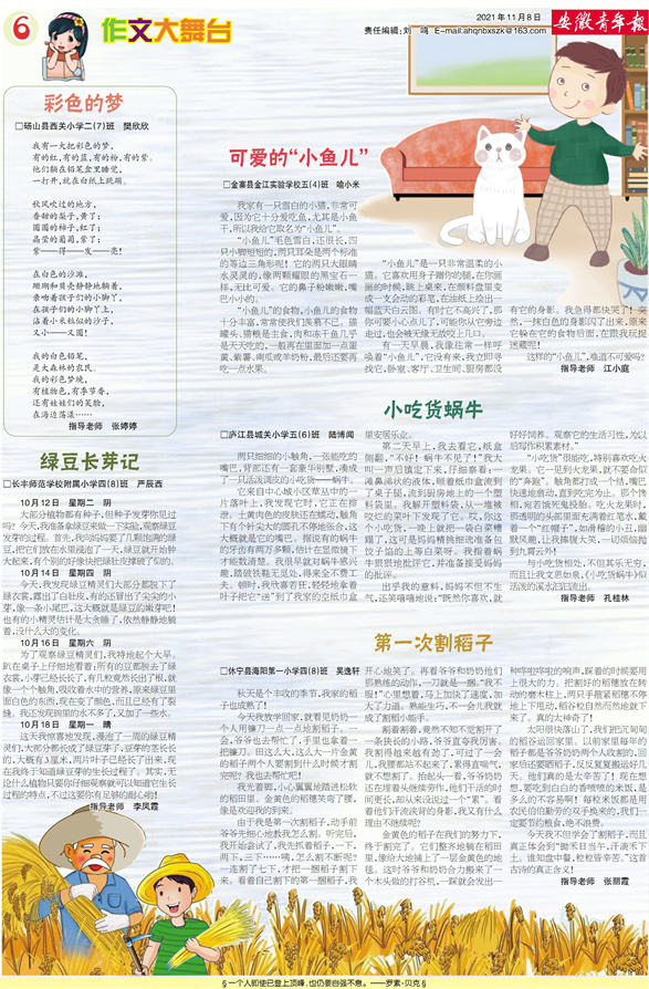 《安徽青年报·学生周刊》励志启智,开阔视野,净化心灵,陶冶情操,参与互动,集新闻性、知识性、趣味性、互动性为一体,是小学生成长的良师益友、参与互动的平台、沟通老师家长的纽带。