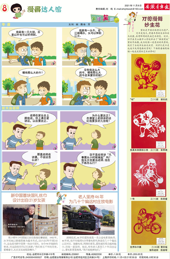 《安徽青年报·学生周刊》励志启智,开阔视野,净化心灵,陶冶情操,参与互动,集新闻性、知识性、趣味性、互动性为一体,是小学生成长的良师益友、参与互动的平台、沟通老师家长的纽带。