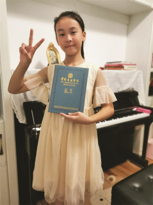 我喜欢钢琴,爸爸是我忠实的听众,他常说我比他“厉害”。因为他表达情感的方式很简单,只有唱歌和写作,而我可以通过音乐或者绘画的形式进行表达。记得有一次,爸爸拿着《桥边姑娘》的歌谱让我弹奏,我跟着谱子试了两次,然后流利地弹奏了出来,看到他享受的表情,我感觉心中好满足。练琴久了,我也会有心不在焉的时候,甚至有时有点讨厌钢琴。爸爸听到我浮躁的琴声,来到我身边。他说:“我还清楚地记得琪琪你一年级第一次听到有人弹莫扎特的《小星星变奏曲》后,强烈地要求学钢琴的样子呢。”我问:“是什么样子呀?”他说:“是很热爱很专心很投入的样子,是一个为了自己喜爱的兴趣愿意放弃洋娃娃、动画片的可爱小女孩的样子。”他还说:“自己选择的路,咬紧牙关也要走到底。”望着爸爸坚定鼓励的眼神和充满期待的脸庞,我顿时浑身充满了学习的力量,及时转变,端正了练琴态度,通过了钢琴考试,顺利拿到了中国音乐学院七级水平证书。尽管爸爸答应的暑假出游的许诺,因为疫情原因搁置了,可是当音符在自己的手指间灵动自如跳跃时,内心那种满足感是多么的充盈实在啊。