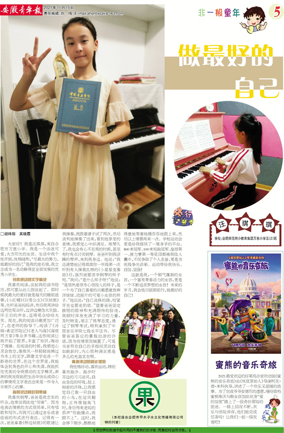 大家好!我是汪琪琪,来自合肥市万慈小学。我是一个活泼可爱,大方阳光的女孩。生活中我个性开朗,性格随和,“尽最大的努力,做最好的自己”是我的座右铭,我立志成为一名动静得宜全面发展的优秀小学生。