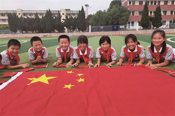 美丽的校园里,有一群可爱的孩子们,在鲜艳的五星红旗的映衬下,绽放出甜美的笑容。祝我们的学校欣欣向荣!愿我们的祖国繁荣昌盛!
