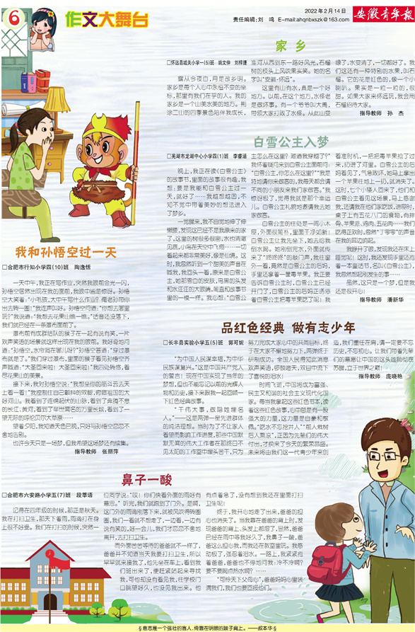 《安徽青年报·学生周刊》励志启智,开阔视野,净化心灵,陶冶情操,参与互动,集新闻性、知识性、趣味性、互动性为一体,是小学生成长的良师益友、参与互动的平台、沟通老师家长的纽带。