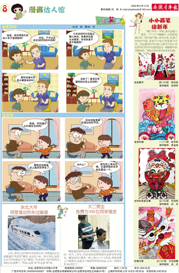 《安徽青年报·学生周刊》励志启智,开阔视野,净化心灵,陶冶情操,参与互动,集新闻性、知识性、趣味性、互动性为一体,是小学生成长的良师益友、参与互动的平台、沟通老师家长的纽带。