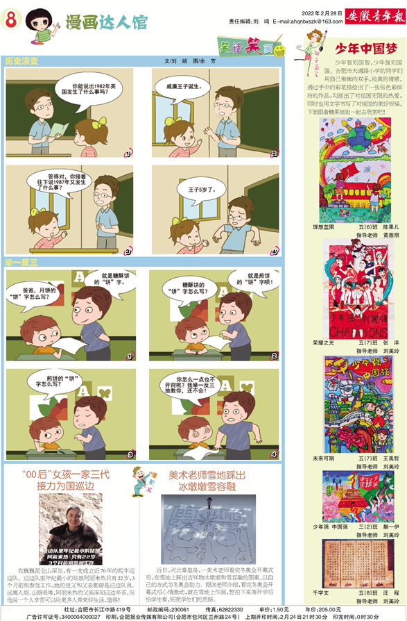 《安徽青年报·学生周刊》励志启智,开阔视野,净化心灵,陶冶情操,参与互动,集新闻性、知识性、趣味性、互动性为一体,是小学生成长的良师益友、参与互动的平台、沟通老师家长的纽带。