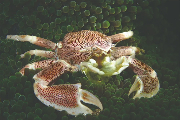 海岸边有很多岩石,把一块岩石抬起来,岩石底下一群小小的“螃蟹”便急匆匆地逃走了。它们名为“瓷蟹”,然而,它们不是蟹,而是虾。